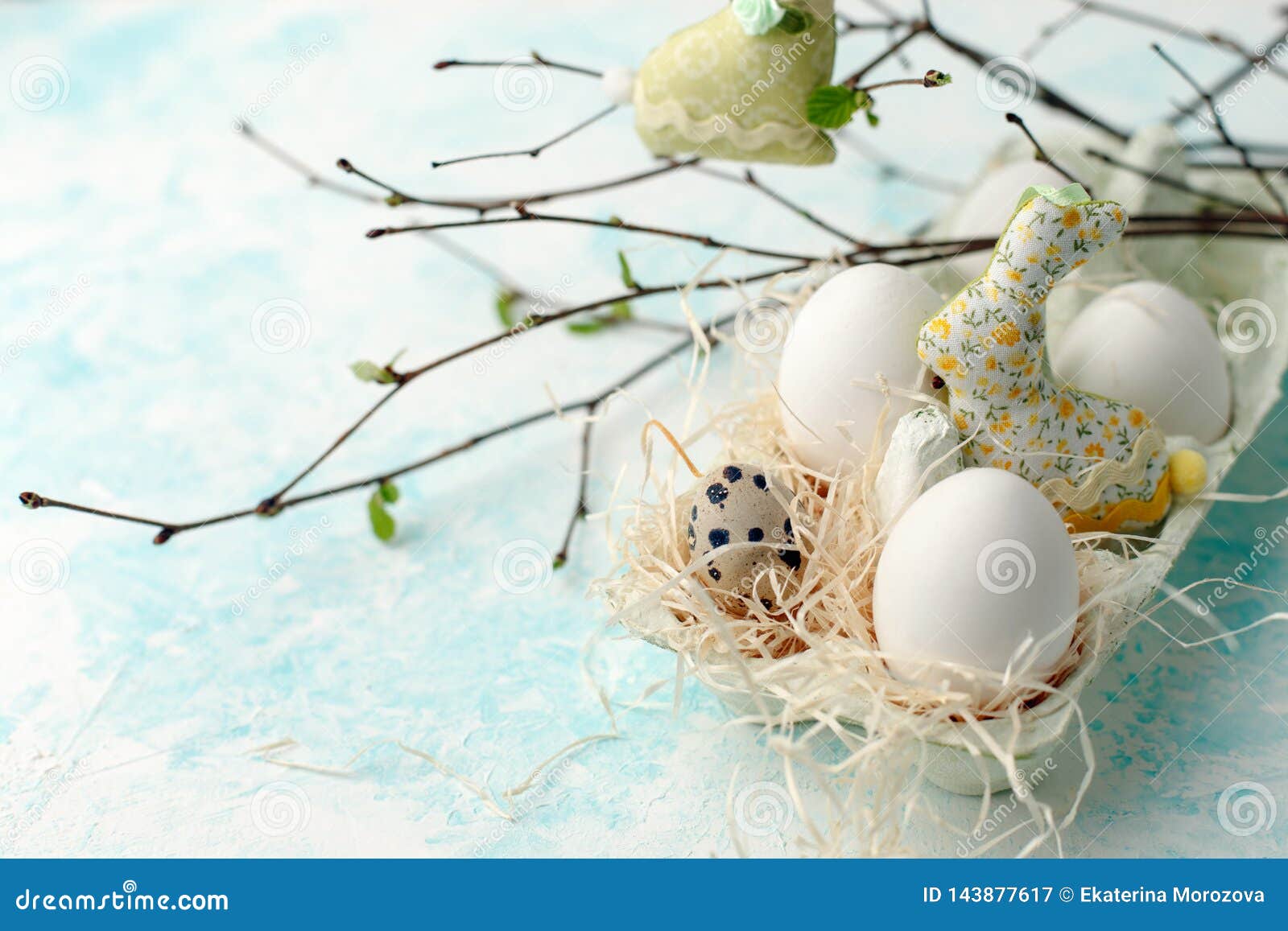Easter Scene With Spring Fresh Greenery Branches Rabbit And