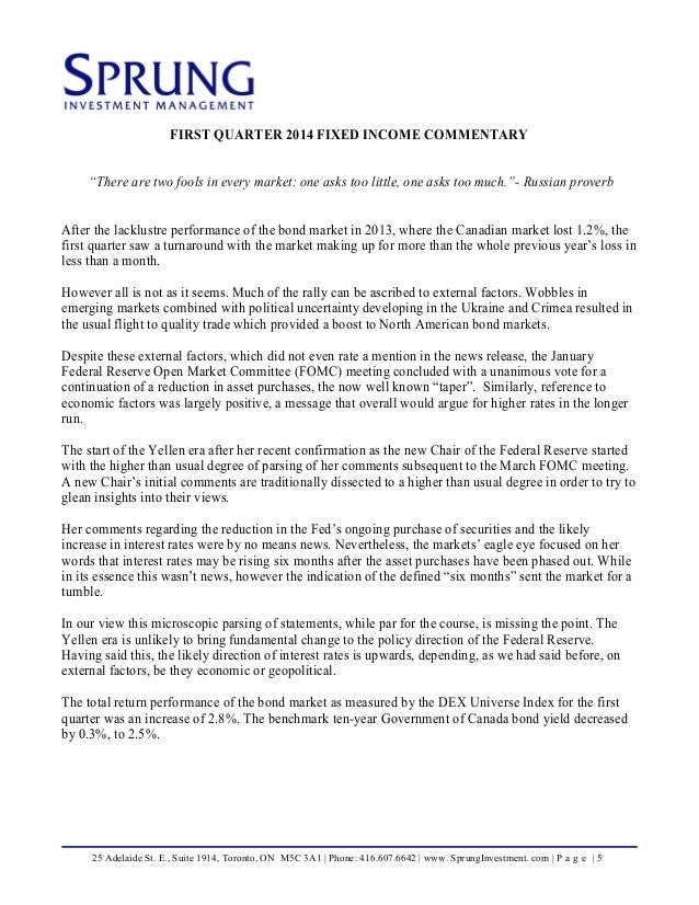 Sprung Investment Management Commentary 1st Quarter 2014